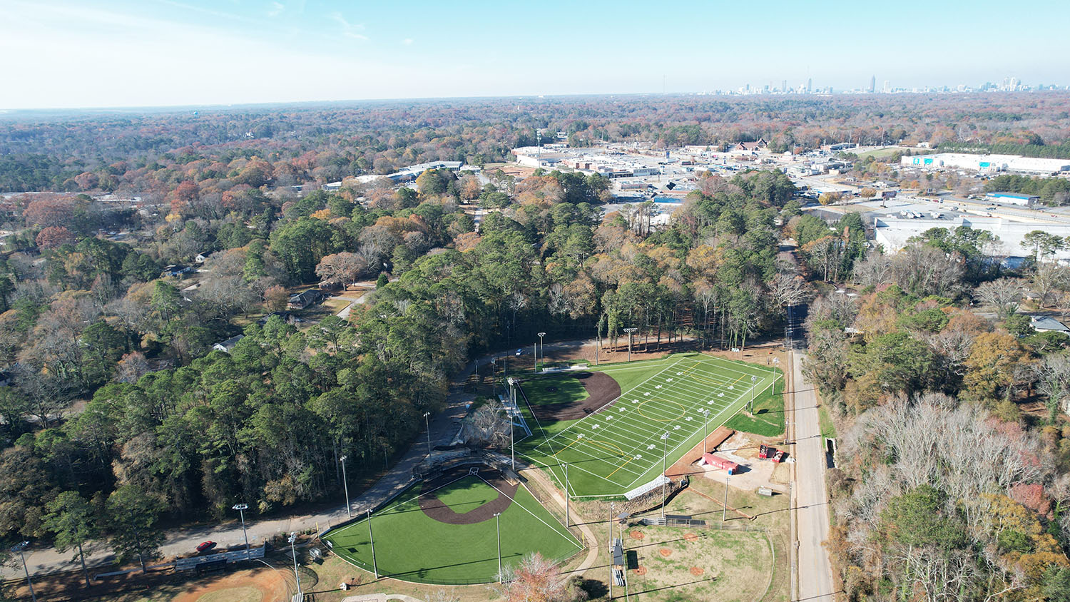 Midway Park is home to a complex of several baseball, softball and one football/multi-use fields. ASG began by renovating the smaller natural turf baseball field with Shaw Sports Turf. Then we shifted focus to the multi-use football/baseball/soccer field that it neighbors. Both fields have been fully renovated using Shaw Sports Turf and will provide an easy-to-maintain and durable surface for the park. ASG is grateful to have spent much of 2022 and 2023 in DeKalb County.
